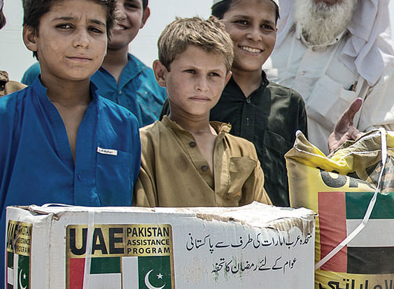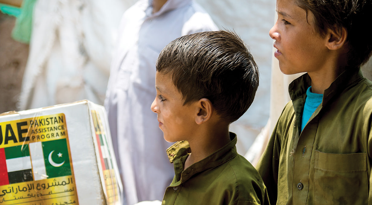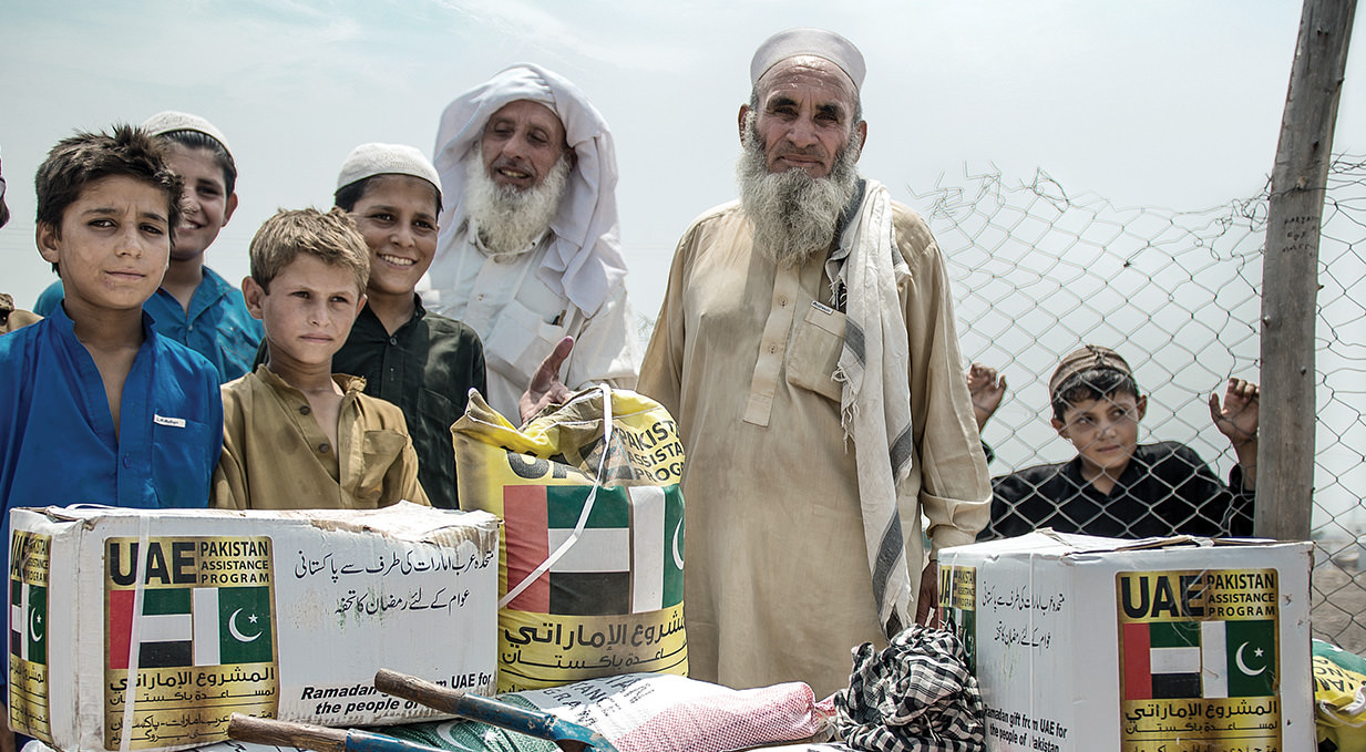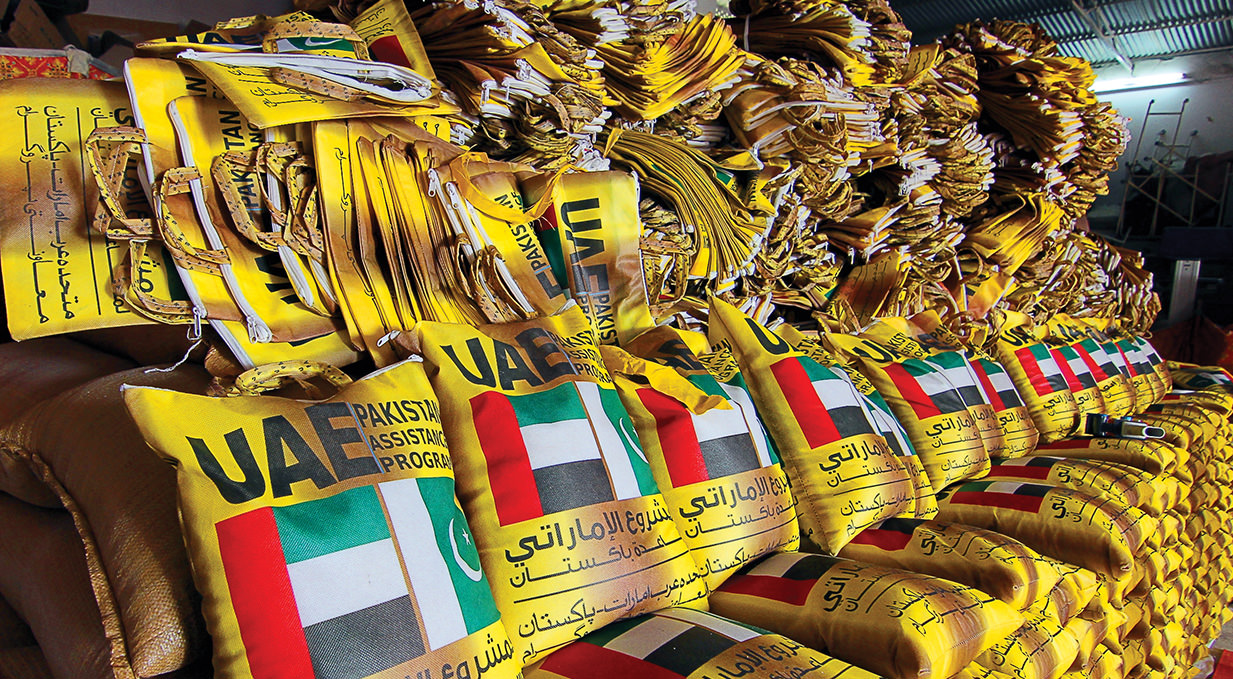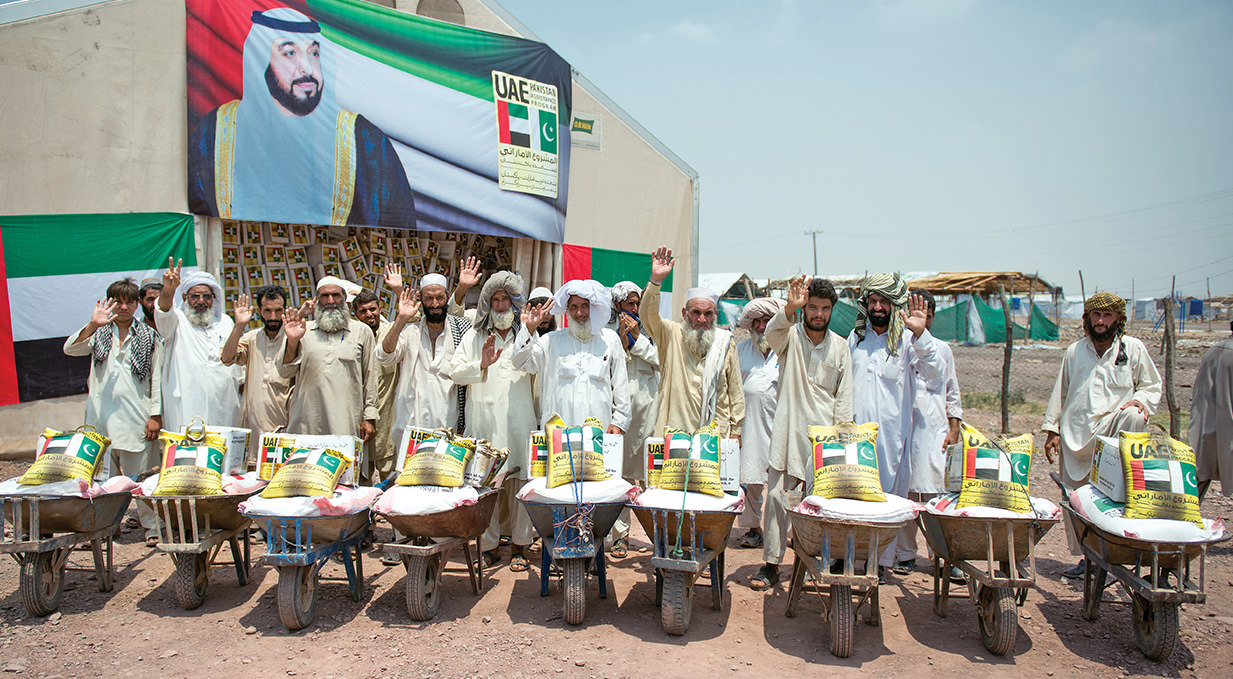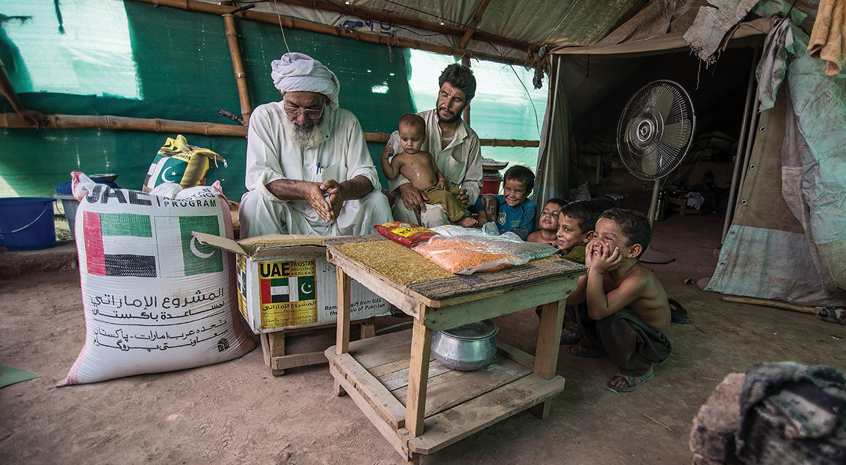 In implementation of the directives of His Highness Sheikh Khalifa bin Zayed Al Nahyan, President of the UAE and Supreme Commander of the Armed Forces, (May God protect him) to deliver food assistance to the needy and the poor in order to alleviate their suffering and offer them a decent life, The UAE PAP management offered Pakistan 193,000 baskets of foodstuff AND 700 TENTS worth $11 MILLION to distribute to the homeless hit by floods and military operations in 2012, 2013 AND 2014. IN ADDITION TO Fifty five tons of dates were distributed to the poor and the needy in various areas and provinces.
