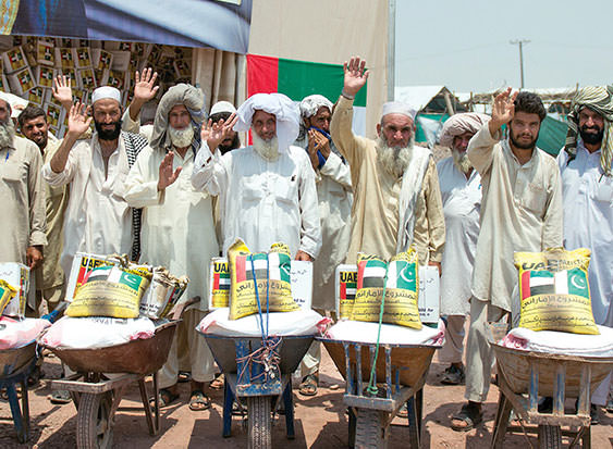 In implementation of the directives of His Highness Sheikh Khalifa bin Zayed Al Nahyan, President of the UAE and Supreme Commander of the Armed Forces, (May God protect him) to deliver food assistance to the needy and the poor in order to alleviate their suffering and offer them a decent life, The UAE PAP management offered Pakistan 193,000 baskets of foodstuff AND 700 TENTS worth $11 MILLION to distribute to the homeless hit by floods and military operations in 2012, 2013 AND 2014. IN ADDITION TO Fifty five tons of dates were distributed to the poor and the needy in various areas and provinces.