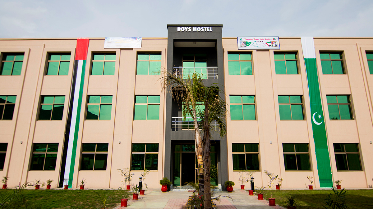The 5430 square meter, 100 bed Sheikh Khalifa bin Zayed Al Nayhan Hospital was set up in Saidu Sharif, Khyber Pakhtunkhwa. It consists of departments as varied as general medicine, gynecology, maternity, pediatrics and emergency, in addition to operation theaters, admission wardens and intensive care units (ICUs).